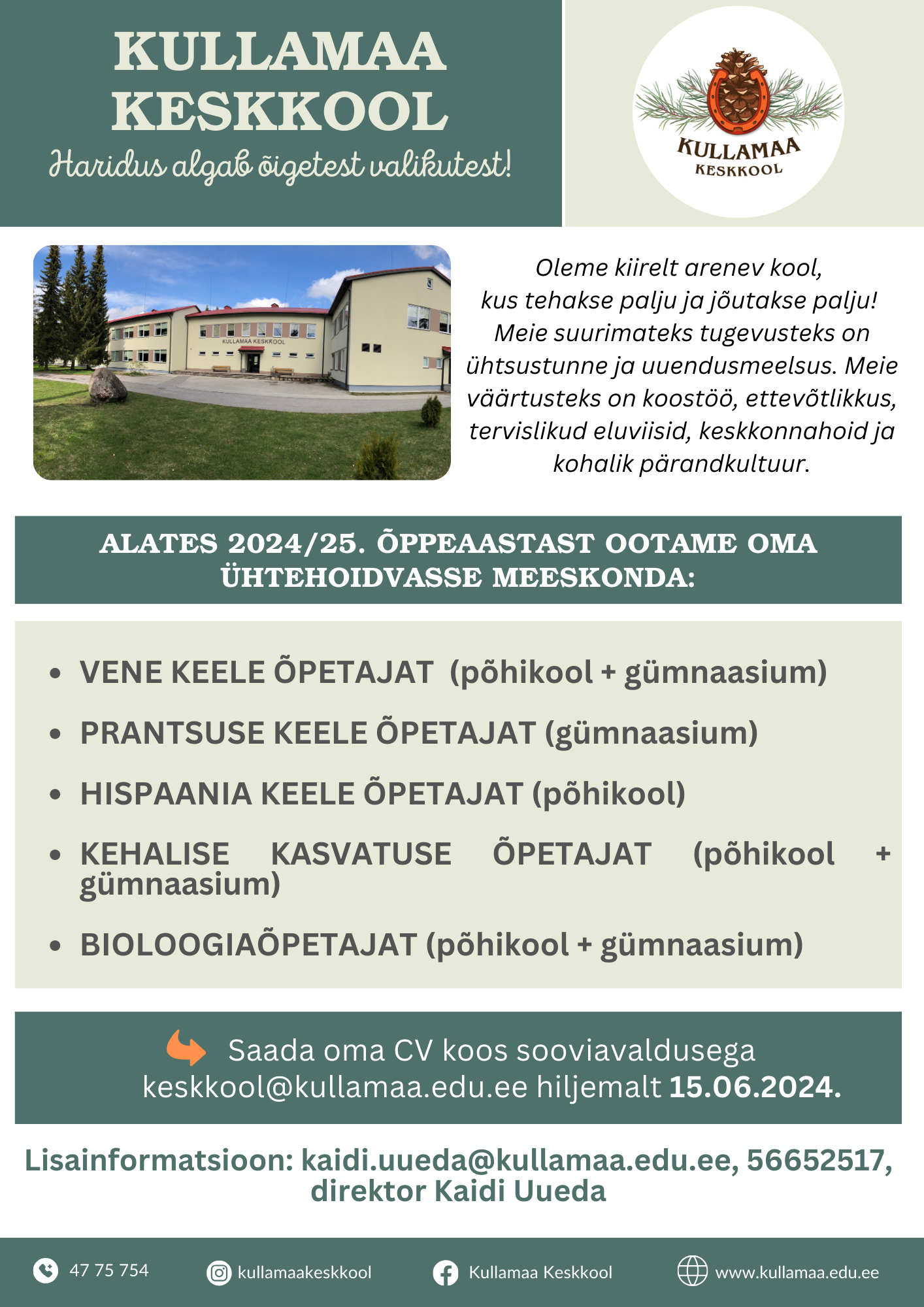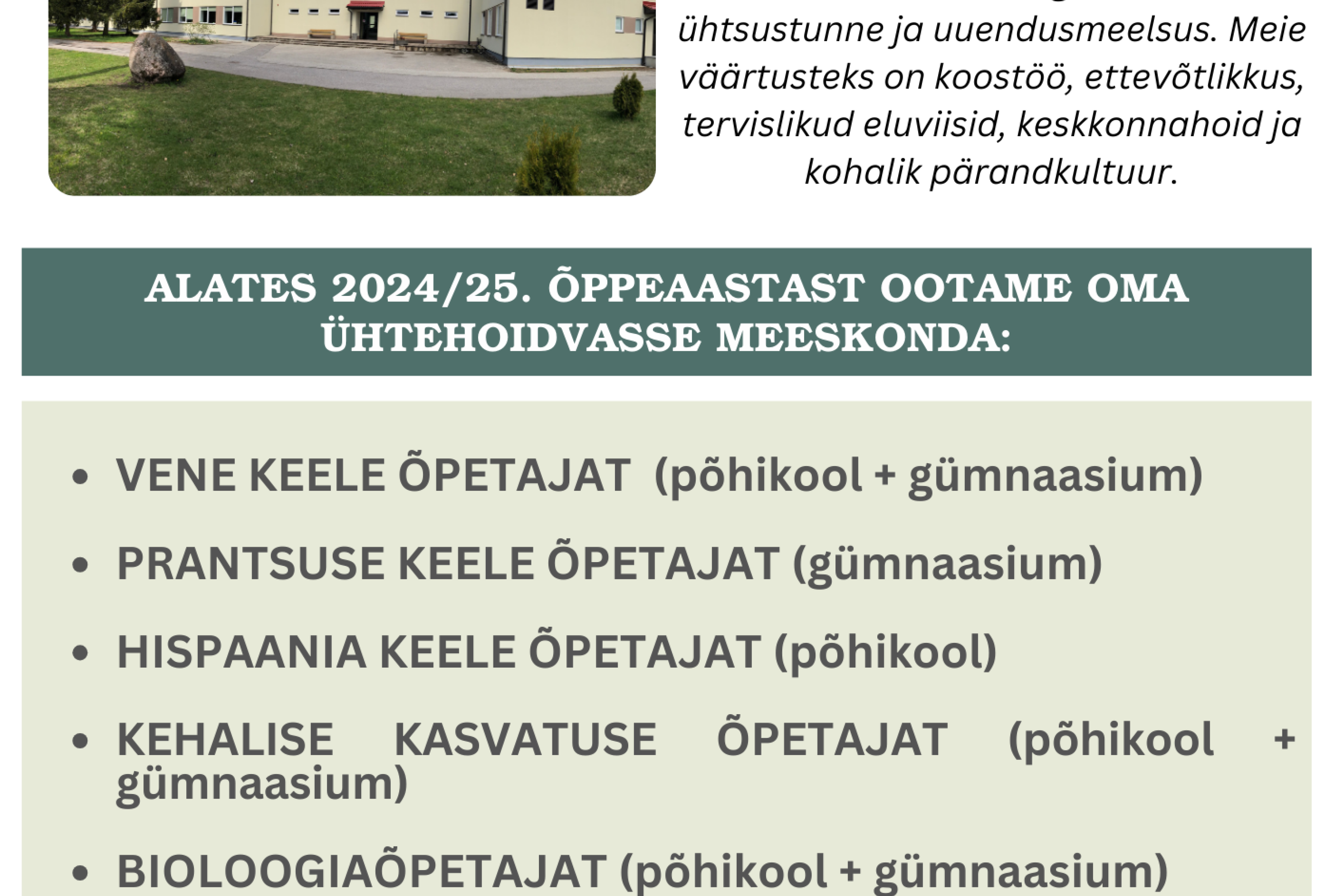 Ootame oma kooli uusi õpetajaid