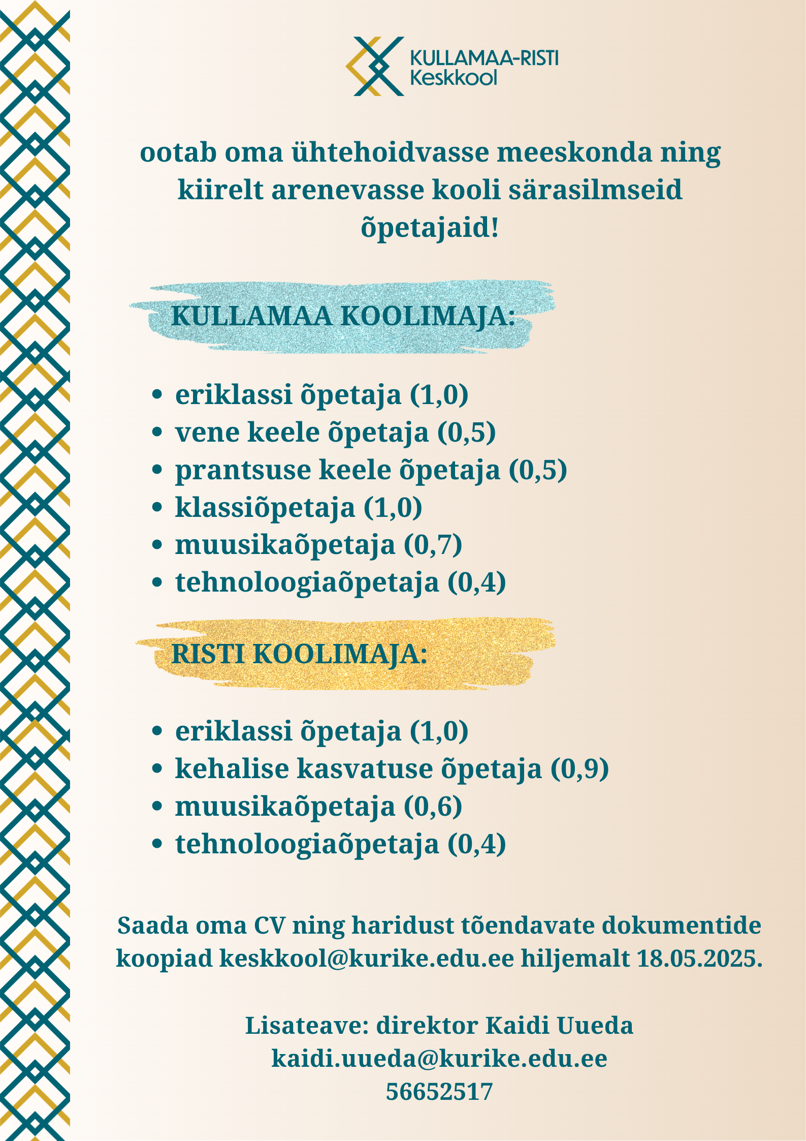 Kullamaa Jüriöö jooks toimub 23. aprillil Loomise kuupäev 17.04.2026 Autor Triin Raave 10.04 droonid Kullamaal Loomise kuupäev 08.04.2026 Autor Triin Raave Risti õppekoha õppekäik – koolipäev väljaspool kooli Loomise kuupäev 08.04.2026 Autor Triin Raave Vastuvõtt 10. klassi Loomise kuupäev 27.03.2026 Autor Meeri Seiman Vaata rohkem