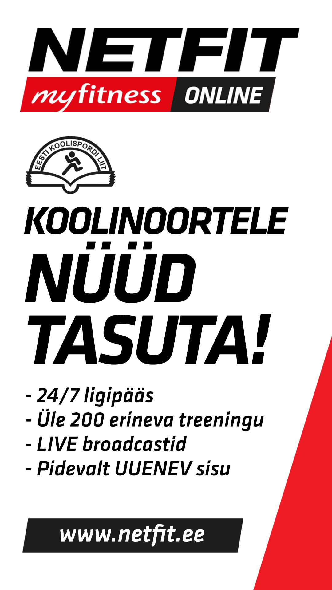MyFitness koostöös Eesti Koolispordi Liiduga on avanud NETFIT online treeningute sektsiooni spetsiaalselt koolinoortele!
