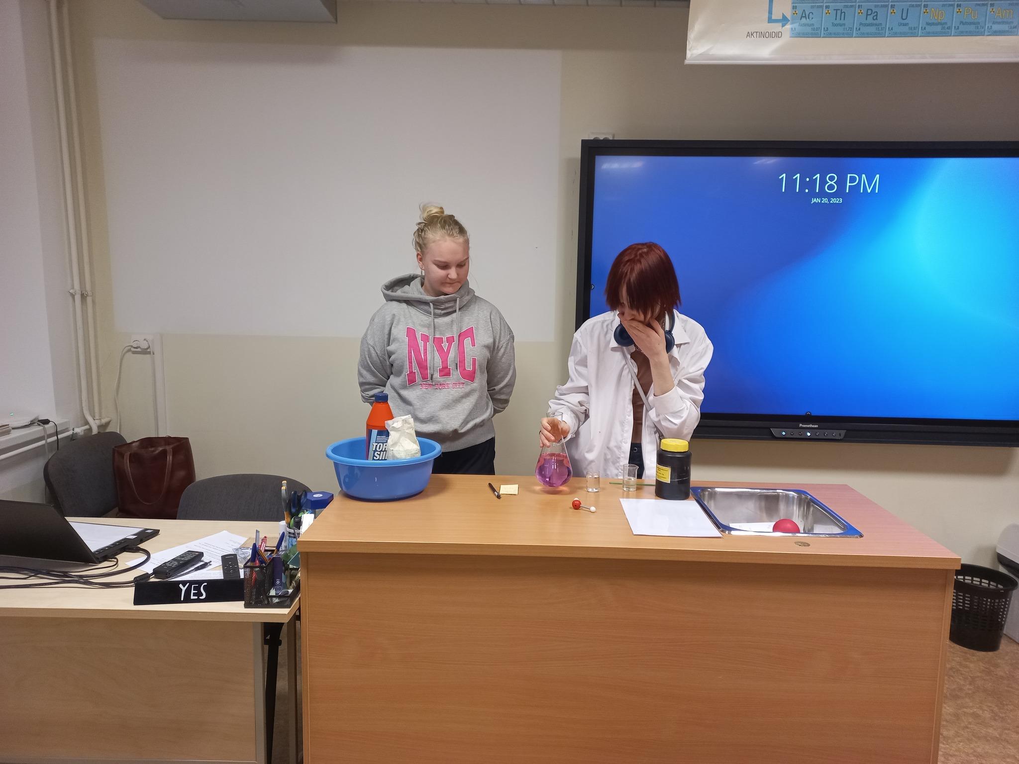 11. klassi õpilased on lõpetamas oma keemiakursust.