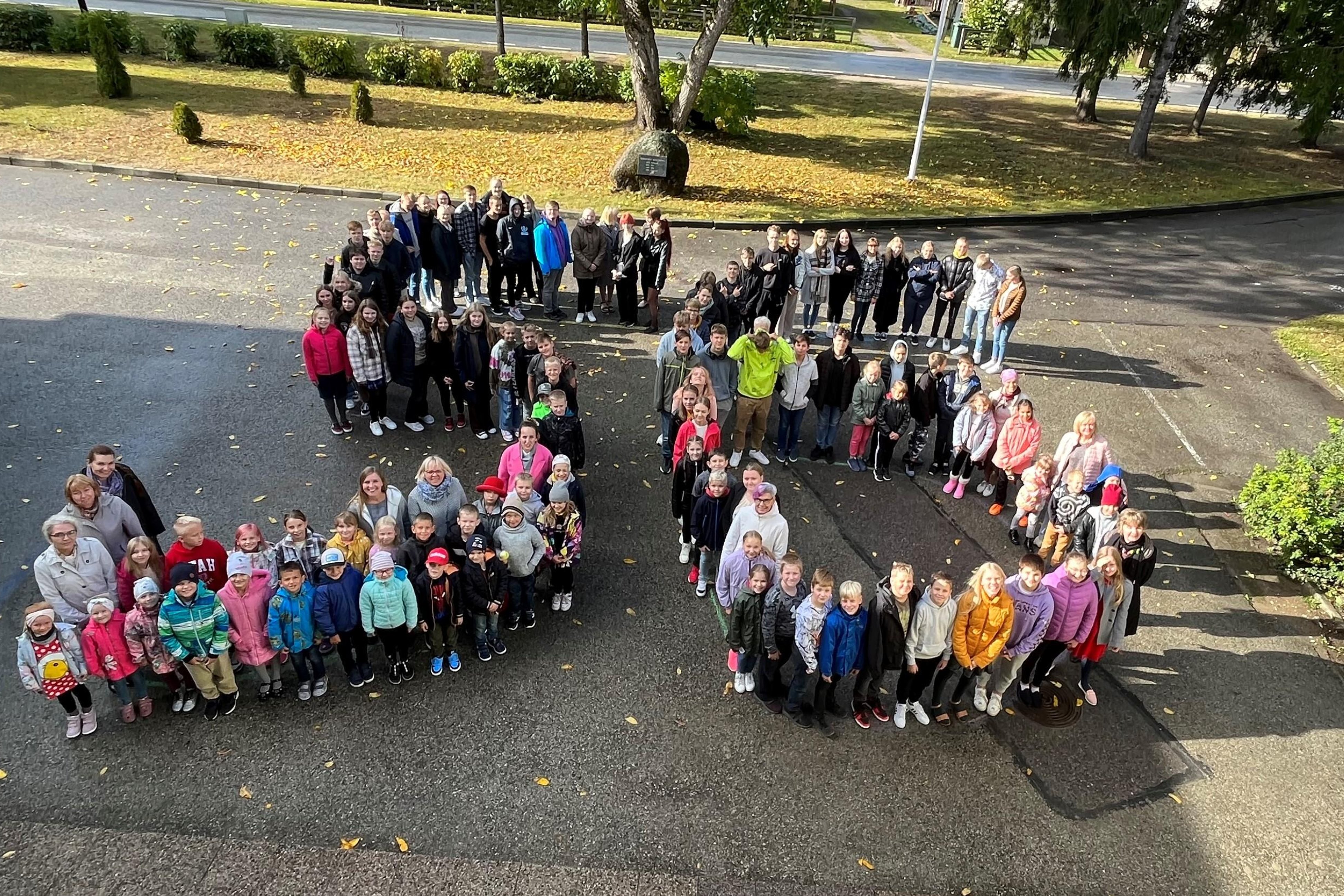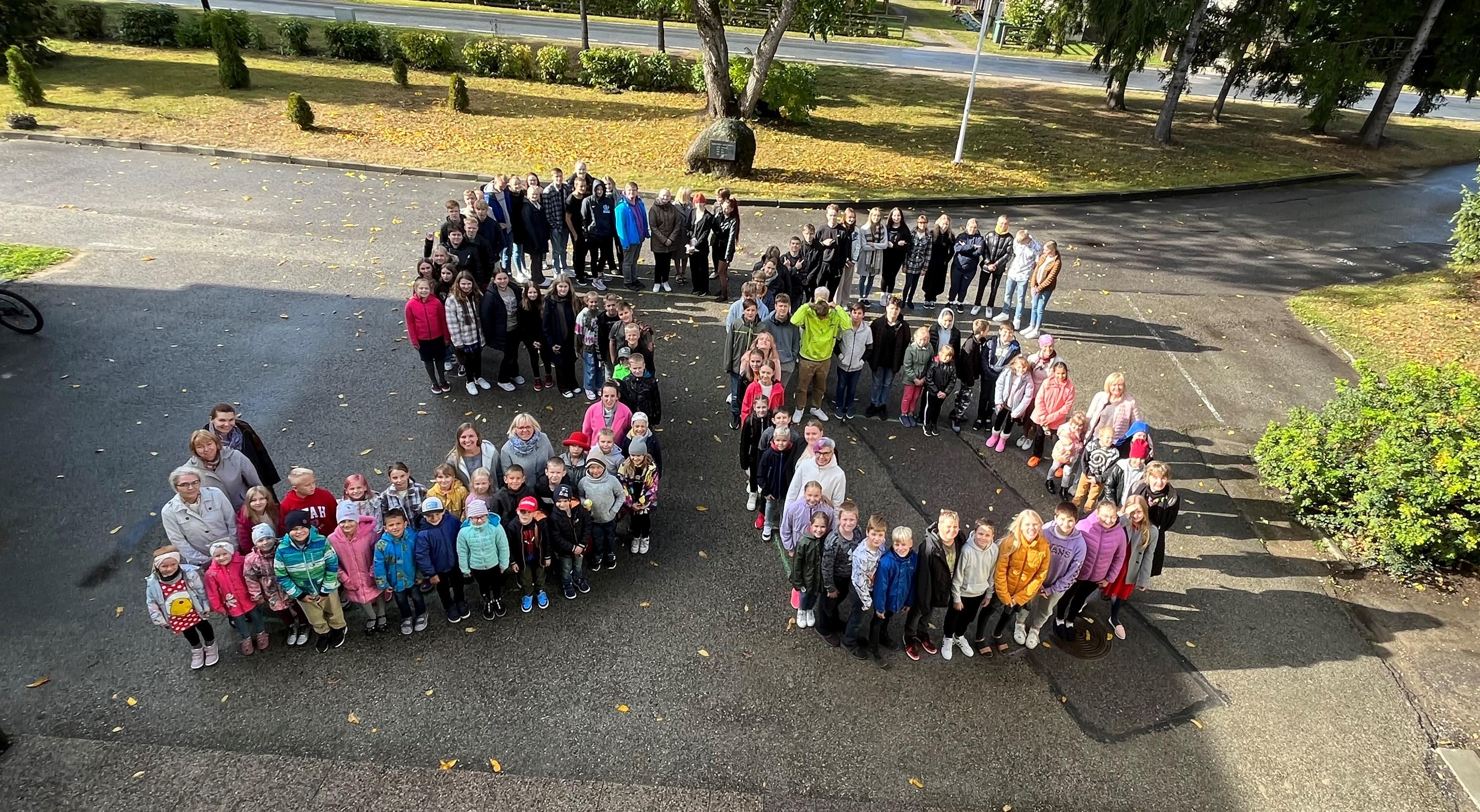 16. septembril, vihma ja päikest täis päeval, tähistasime kogu kooliperega meie kooli sünnipäeva. Pidupäeva puhul moodustasime õpilastest ja õpetajatest koolimaja ette kooli vanuse, kallistasime koolimaja ning seejärel suundusime õuealale. Seal istutasime lillepeenrasse tulbisibulaid, et kevadel üheskoos seda õitemerd nautida.