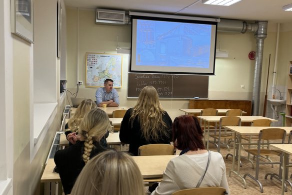 Galina Aruksaar, kes rääkis õpilastele esmaabist. Koos tehti praktiliselt läbi nii haavade sidumine kui ka inimese õigesse asendisse pööramine, et hingamisteed oleksid avatud.