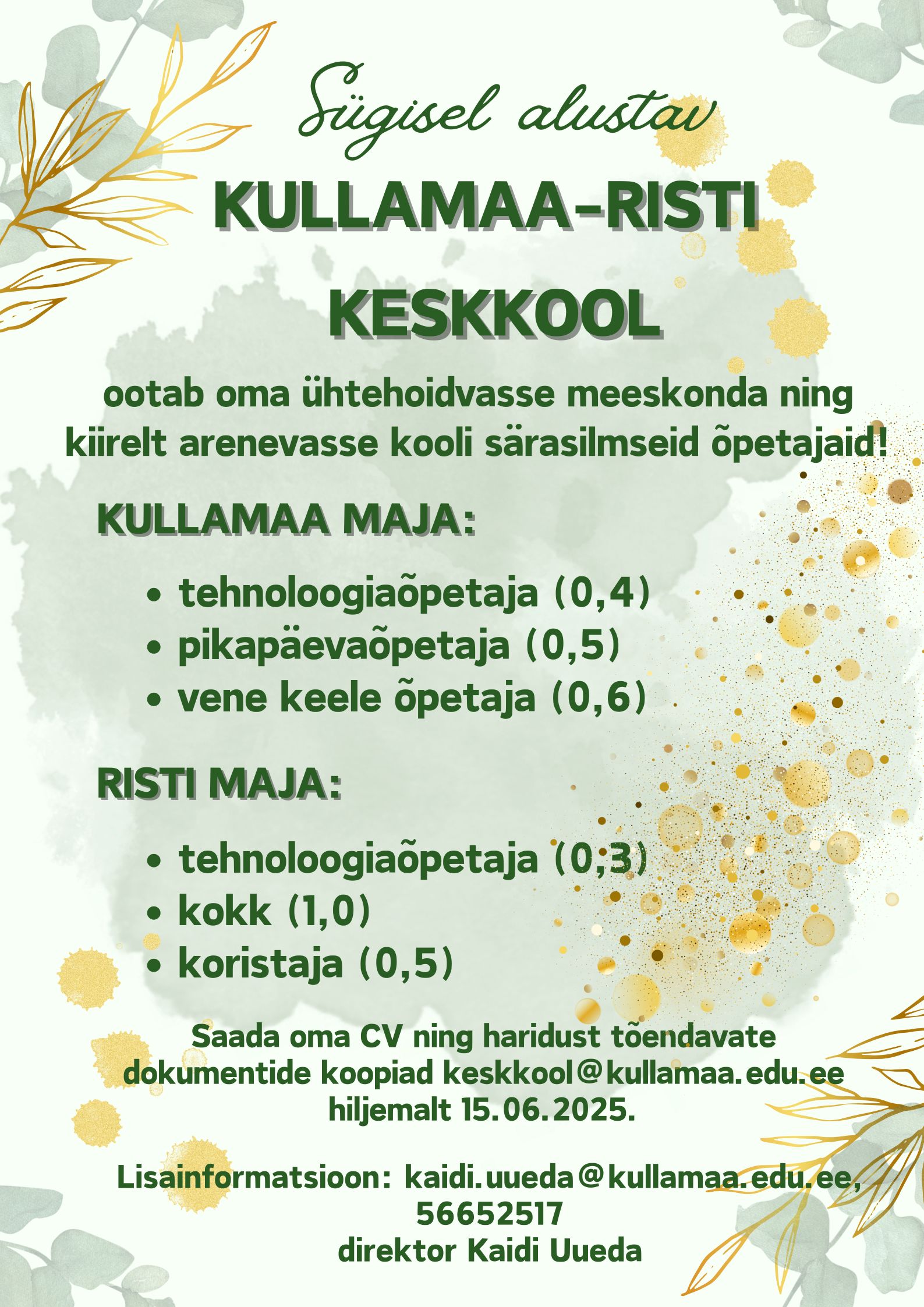 Ootame oma kooli uusi õpetajaid